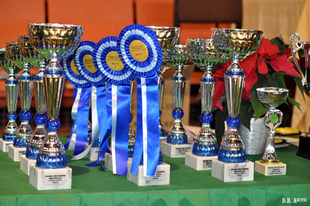pamiątkowe rozety na grupę V oraz puchar dla Zwycięzcy Rasy Siberian Husky